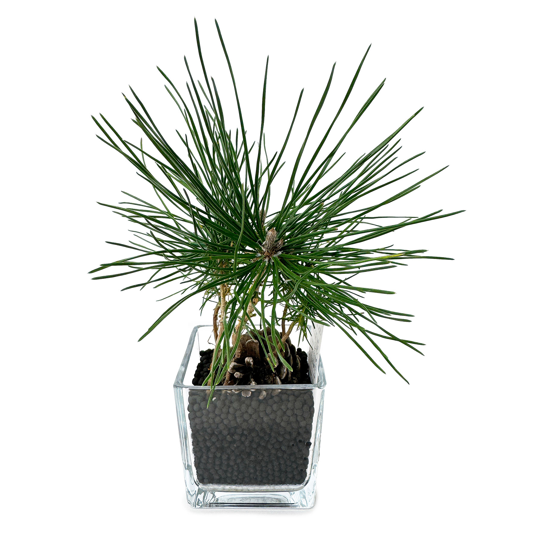 水やり:ウォーターレベルまで一度入れたら、なくなったら再度入れる繰り返しあげてください。夏は暑さで、冬は寒さで生育が止まっているので一ヶ月に一度程度。特徴 松はどの種類でも風通しの良いところで育てるのが基本! 器素材 ガラス ポットサイズ H75mm×W75mm×D75mm 数量限定!!